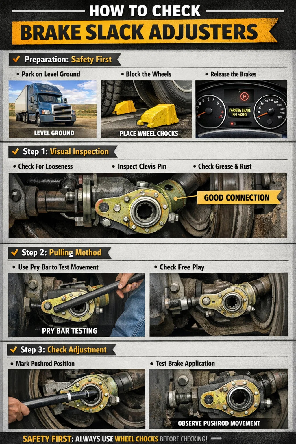 การตรวจสอบเบรก ตัวปรับความหย่อน เป็นทักษะพื้นฐานในการรับรองความปลอดภัยของรถบรรทุก ด้วยความรู้เพียงเล็กน้อย คุณก็สามารถตรวจสอบเบื้องต้นได้ด้วยตัวเอง
